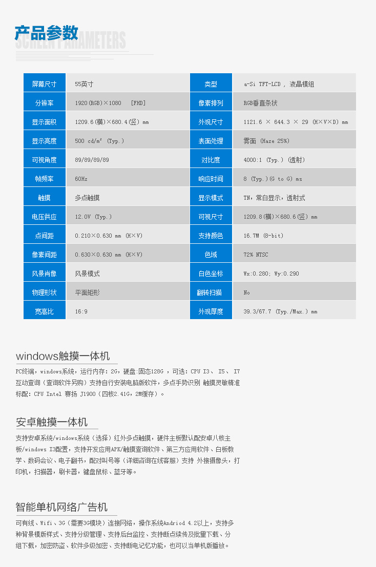 產(chǎn)品名稱:55英寸壁掛觸摸一體機(jī)