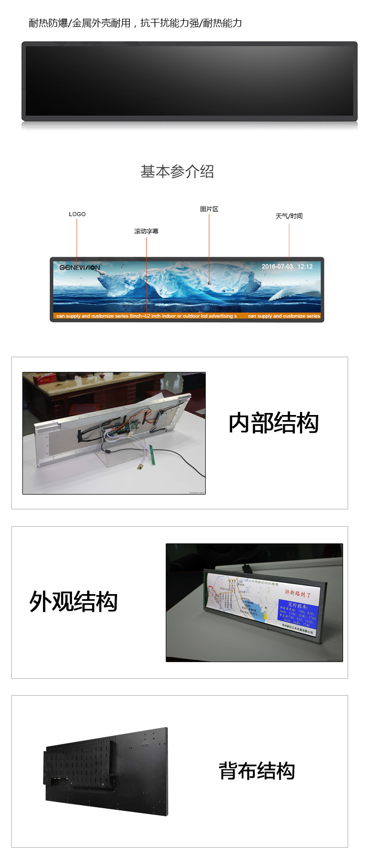 如今,隨著液晶顯示技術(shù)的發(fā)展,出現(xiàn)了新型的長(zhǎng)條液晶產(chǎn)品,長(zhǎng)寬比例超過3:1的液晶長(zhǎng)條屏廣泛應(yīng)用于各行業(yè)領(lǐng)域,在市場(chǎng)上大受好評(píng)。