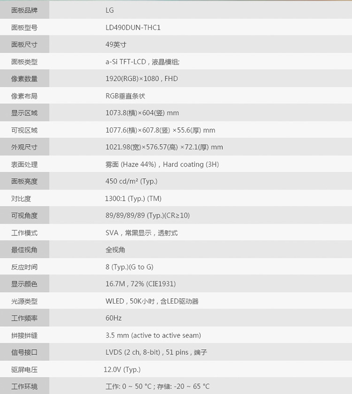 49寸顯示面積    1073.78(H)mm x 604(V)mm