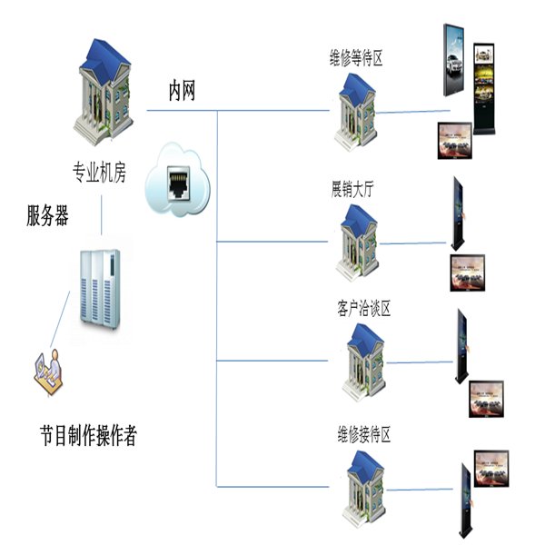 目前4S店基本都是通過產品宣傳折頁、易拉寶、櫥窗海報、燈箱等傳統(tǒng)的媒體進行被動信息宣傳,并且顯得零亂無序。創(chuàng)視紀出的電子海報機可以更加清晰、更加醒目、更加規(guī)范和更加有效地展示汽車產品在顧客面前。通過網絡可以可以遠程、即時發(fā)布廣告信息,使所有的顯示終端形成一個強大的信息發(fā)布平臺。