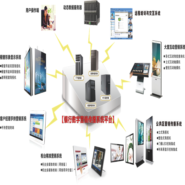 營(yíng)業(yè)網(wǎng)點(diǎn)是金融行業(yè)與客戶溝通的主要途徑。創(chuàng)視紀(jì)金融信息管理發(fā)布系統(tǒng)解決方案在長(zhǎng)期“企業(yè)-客戶”互動(dòng)營(yíng)銷服務(wù)研究的基礎(chǔ)上,采取先進(jìn)技術(shù),結(jié)合金融業(yè)務(wù)特點(diǎn),幫助銀行構(gòu)建基于液晶電視、LED等數(shù)字多媒體的業(yè)務(wù)互動(dòng)營(yíng)銷平臺(tái)。充分利用集中管理的數(shù)字多媒體信息發(fā)布系統(tǒng)提供的功能,有效提高客戶對(duì)銀行產(chǎn)品、服務(wù)的認(rèn)知度,減低客戶等待服務(wù)的心理等待時(shí)間,以改善客戶滿意度。