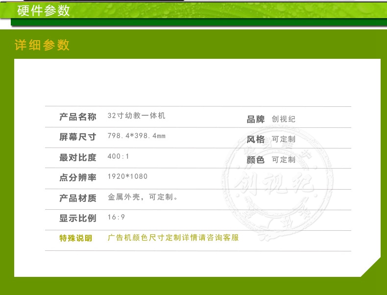 產(chǎn)品名稱:32寸幼教一體機(jī)                  品牌: 創(chuàng)視紀(jì)
