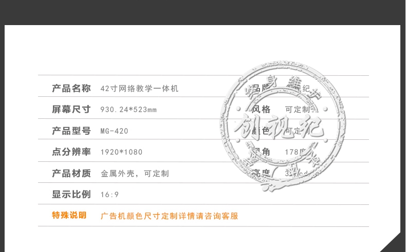 產(chǎn)品名稱:42寸幼教機           品牌: 創(chuàng)視紀(jì)