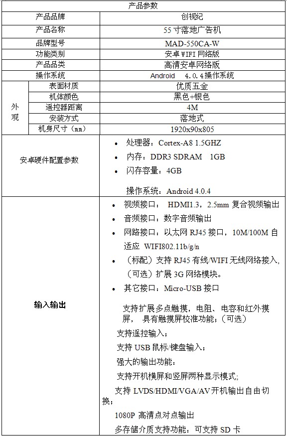 液晶屏尺寸      55 寸TFT真彩液晶屏