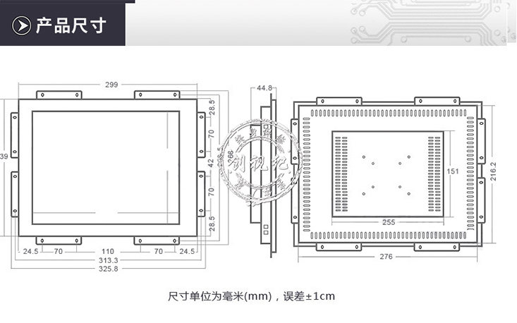 嵌入式的工業(yè)顯示器顧名思義他肯定是嵌入到客戶的產(chǎn)品上,客戶的產(chǎn)品要有一個(gè)中大型的控制柜,我們的嵌入式工業(yè)顯示器是只剩下面板,其余部分都嵌入到了客戶設(shè)備中,后面用掛鉤固定(大型控制柜只要按我們嵌入式顯示器安裝圖中開(kāi)孔尺寸開(kāi)一個(gè)大方孔)其它地方不用開(kāi)任何安裝孔。