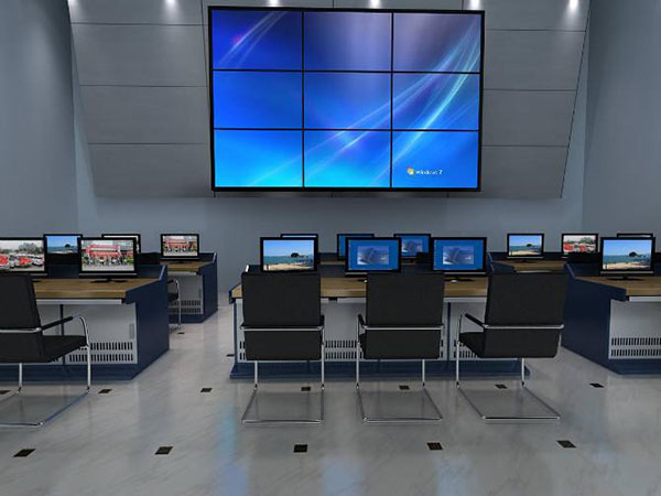 二、操作操控臺(tái)(室)裝修及設(shè)備方位要求 1) 操作操控電腦的方位應(yīng)在拼接屏幕的正對(duì)面,要求操作員能夠便利直觀的看到拼接屏的操作。假如有專門間隔的操作操控室,則操作操控室與大屏顯示室之應(yīng)有通明玻璃,便利操作員的觀看。 2) 操控電腦應(yīng)盡可能坐落拼接屏的正對(duì)面方向,并與拼接屏有適宜的間隔,以便于調(diào)試、顏色調(diào)整等操作。 3) 圖畫操控器的擺放應(yīng)坐落幕墻旁邊或后邊的通道(機(jī)柜內(nèi)),應(yīng)盡量靠近投影箱體的接口,削減RGB走線間隔。