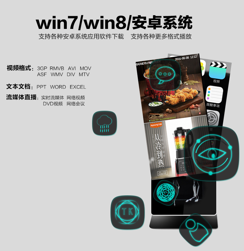 此款機(jī)型是一款以手機(jī)充電為核心功能,影音廣告播放系統(tǒng)為主,可兼容燈箱廣告的多功能廣告型手機(jī)充電站。標(biāo)配12路充電接口設(shè)計可以滿足各類客戶的需求(多路可根據(jù)客戶需求),它已成為體育中心,機(jī)場,商場、會議中心、商業(yè)街、加油站的首選。