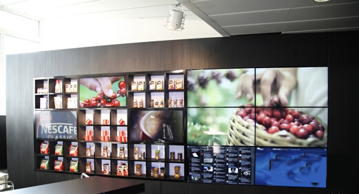 總部位于法國(guó)巴黎附近的Defocus電影為雀巢瑞士韋威的總部辦公室設(shè)計(jì)了一個(gè)非常漂亮的雀巢咖啡吧液晶拼接。