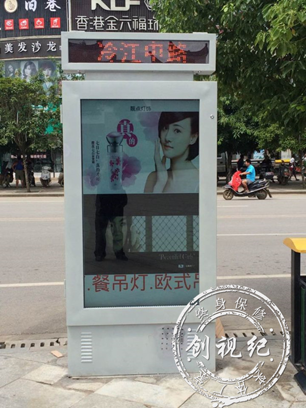 2015年6月29日電,湖南冷江中路,創(chuàng)視紀65寸戶外空調防水廣告機正式調試成功,這標志著深圳梅塞德斯科技有限公司----創(chuàng)視紀廣告機生產廠家,又邁入一個新的臺階,戶外廣告機不同于普通的室內廣告機,戶外廣告機要求達到國際標準IP65,對防水防塵防雷耐高溫有著極高的要求,對廣告機廠家的生產工藝有著極嚴格的規(guī)范,此批的戶外廣告機,因為是用在站臺旁,所以廣告機上方特別加了一個LED的顯示屏,用來顯示各路段,廣告機的背面屏幕是安裝的滾動燈箱,兩種工藝,使得這臺65寸的戶外廣告機更全面性,需要的趕緊來電訂購吧!